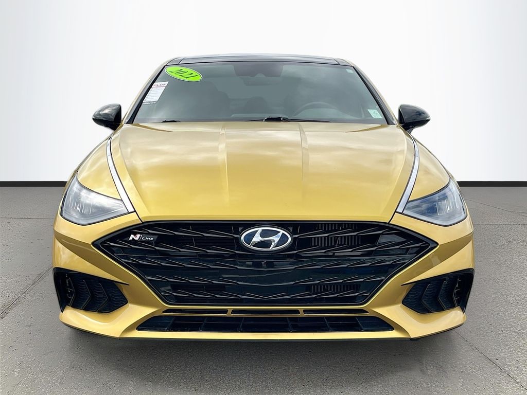 Glowing Yellow 2021 Hyundai Sonata N Line FWD 8-Speed Automatic I4 LOCAL TRADE-IN, NON SMOKERS TRADE-IN, BALANCE OF FACTORY WARRANTY, 150 POINT SAFETY INSPECTION, CARFAX ONE OWNER, LEATHER, Sonata N Line, 4D Sedan, FWD, Black Leather.