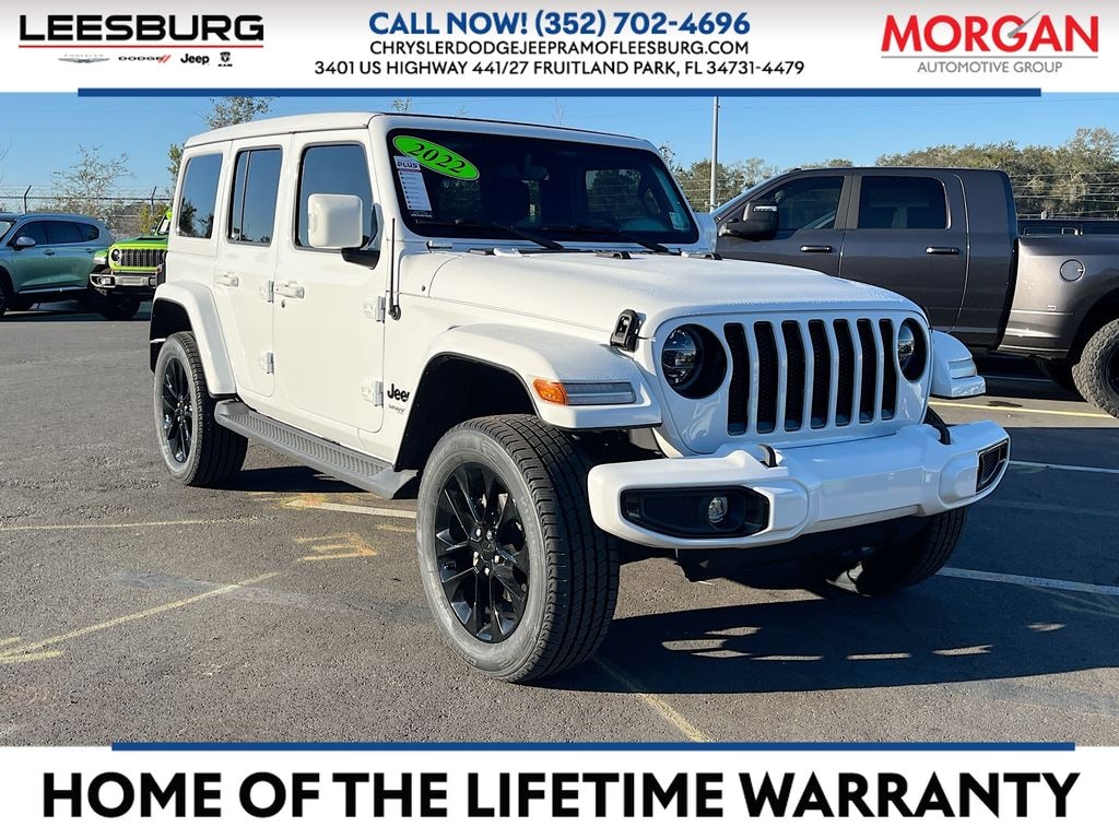 Bright White Clearcoat 2022 Jeep Wrangler Unlimited Sahara High Altitude 4WD 8-Speed Automatic 2.0L I4 DOHC LOCAL TRADE-IN, NON SMOKERS TRADE-IN, BALANCE OF FACTORY WARRANTY, NAVIGATION, FACTORY NAVIGATION, 150 POINT SAFETY INSPECTION, CARFAX ONE OWNER, CLEAN CARFAX, POWER SUNROOF, FACTORY POWER SUNROOF, LEATHER, 4D Sport Utility, 2.0L I4 DOHC, 4WD, Bright White Clearcoat, ABS brakes, Alloy wheels, Compass, Electronic Stability Control, Front dual zone A/C, Heated door mirrors, Illuminated entry, Low tire pressure warning, Navigation System, ParkView Rear Back-Up Camera, Remote keyless entry, Traction control.