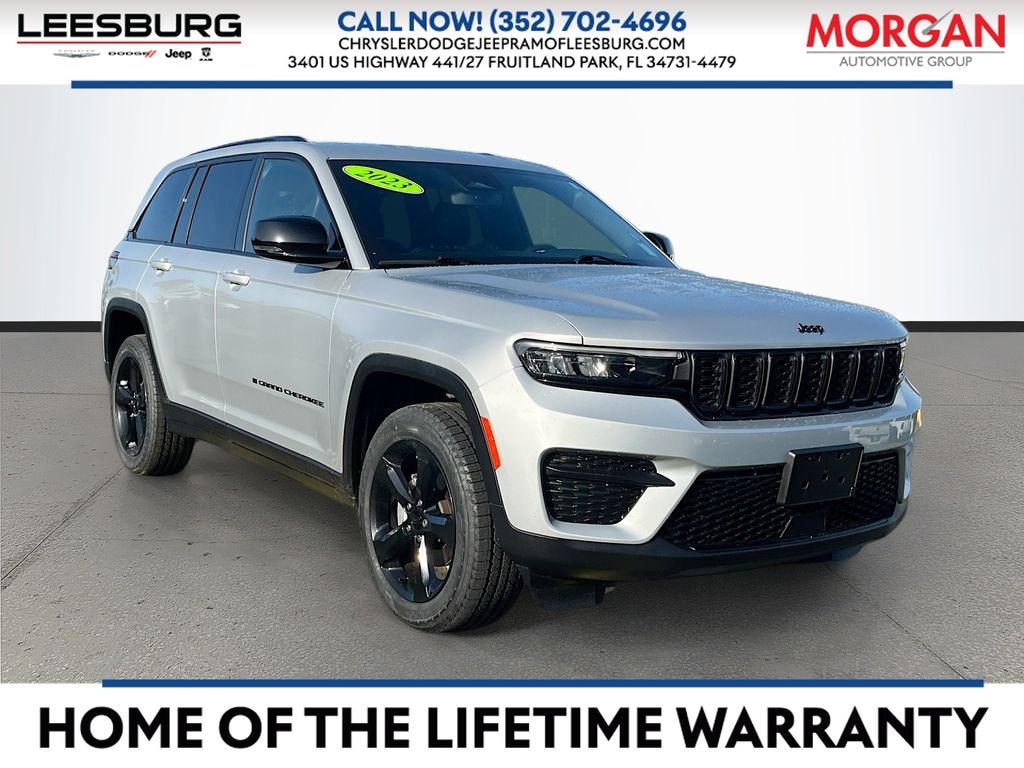 Silver Zynith 2023 Jeep Grand Cherokee Altitude 4WD 8-Speed Automatic 3.6L V6 24V VVT LOCAL TRADE-IN, NON SMOKERS TRADE-IN, BALANCE OF FACTORY WARRANTY, 150 POINT SAFETY INSPECTION, CARFAX ONE OWNER, CLEAN CARFAX, LEATHER, Grand Cherokee Altitude, 4D Sport Utility, 3.6L V6 24V VVT, 4WD.