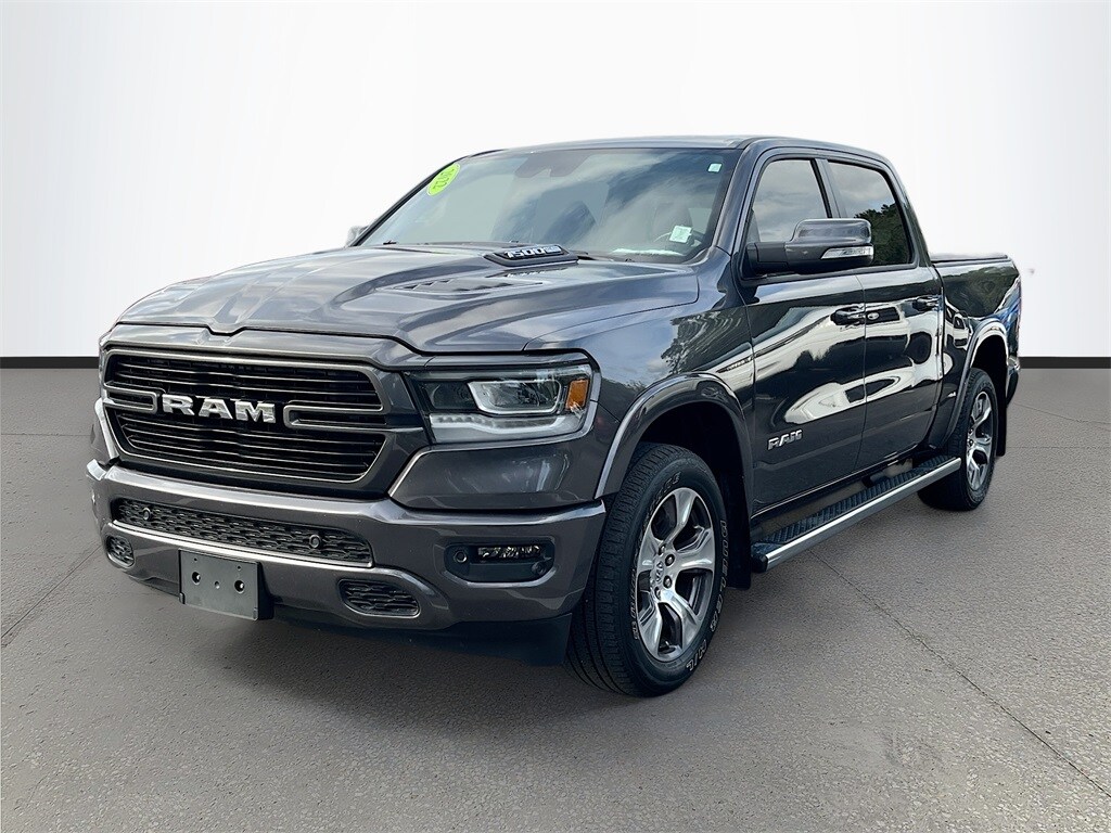 Granite Crystal Metallic Clearcoat 2022 Ram 1500 Laramie 4WD 8-Speed Automatic HEMI 5.7L V8 Multi Displacement VVT LOCAL TRADE-IN, NON SMOKERS TRADE-IN, BALANCE OF FACTORY WARRANTY, NAVIGATION, 150 POINT SAFETY INSPECTION, CARFAX ONE OWNER, CLEAN CARFAX, LEATHER, 1500 Laramie, 4D Crew Cab, HEMI 5.7L V8 Multi Displacement VVT, 4WD.